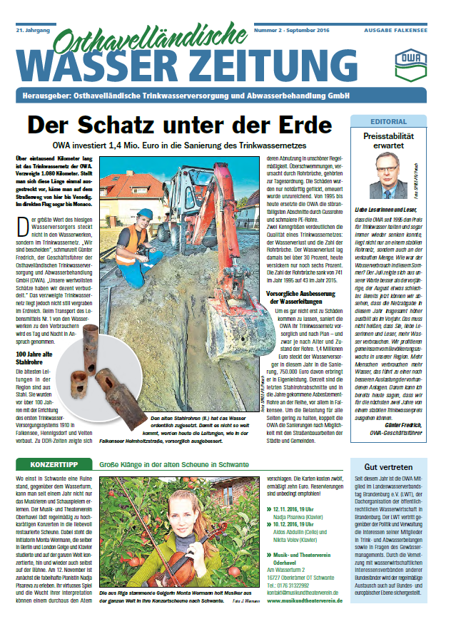 - Lesen Sie hier die Pressemitteilung der OWA GmbH zu einer Rohrnetzauswechselungen in Friesack.