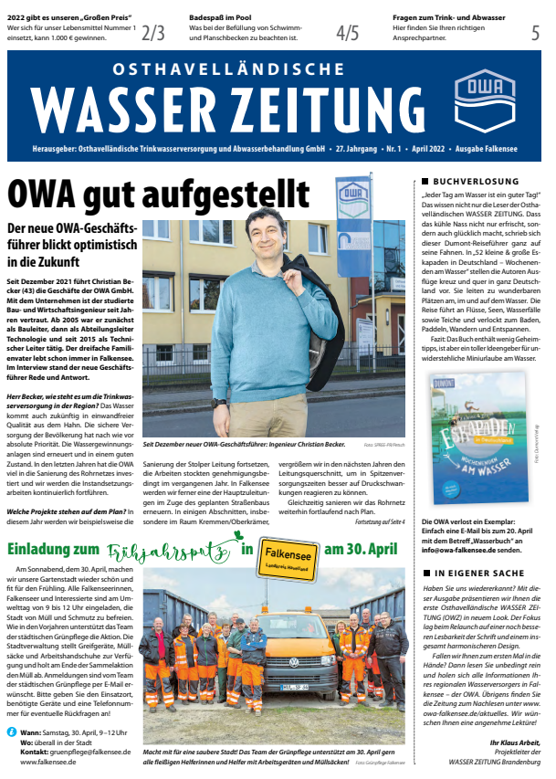 - Lesen Sie hier die Pressemitteilung der OWA GmbH zu einer geplanten Wassersperrung in Friesack OT Wutzetz.